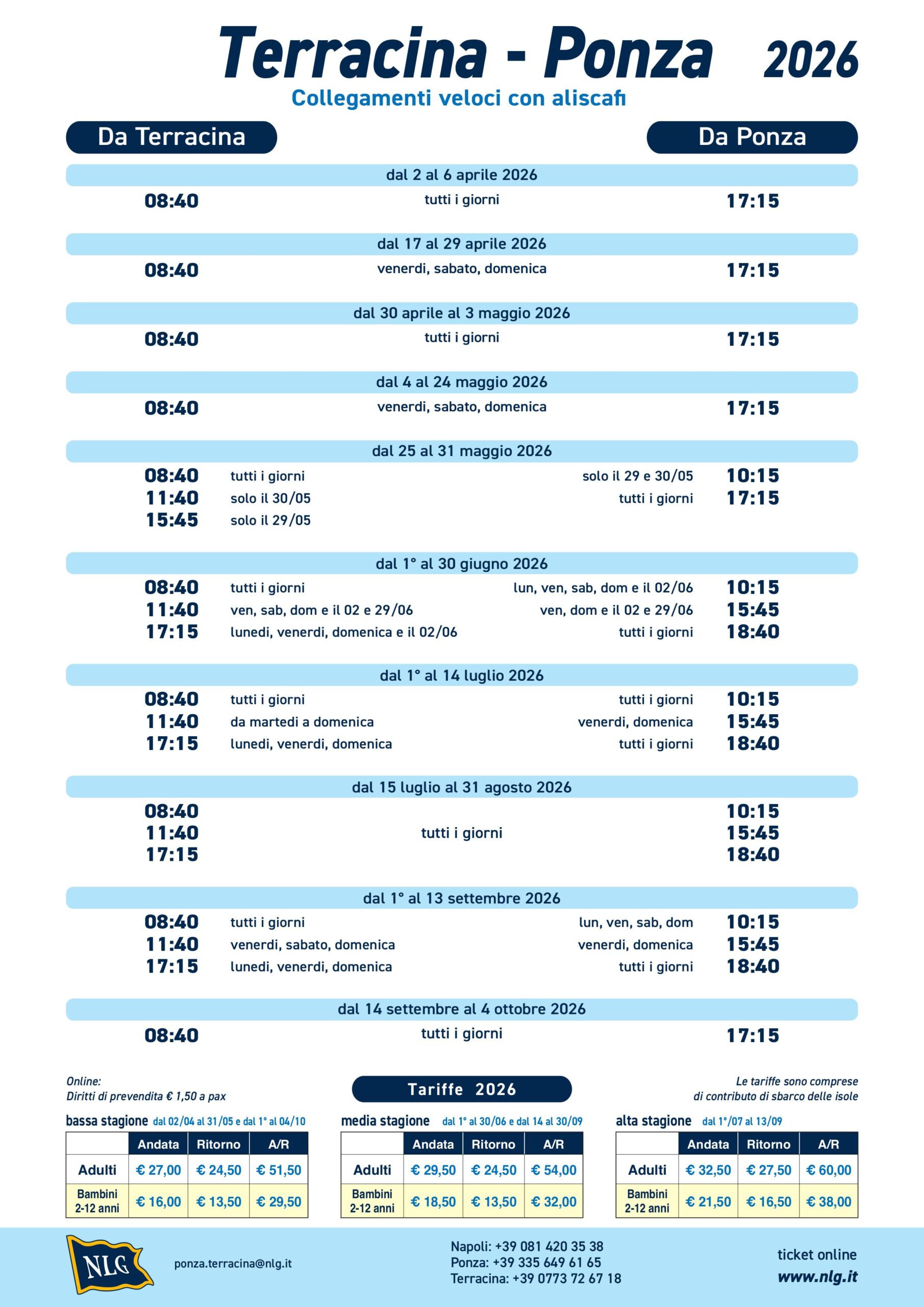 Scopri gli orari e le tariffe per Terracina – Ponza e prenota il tuo biglietto